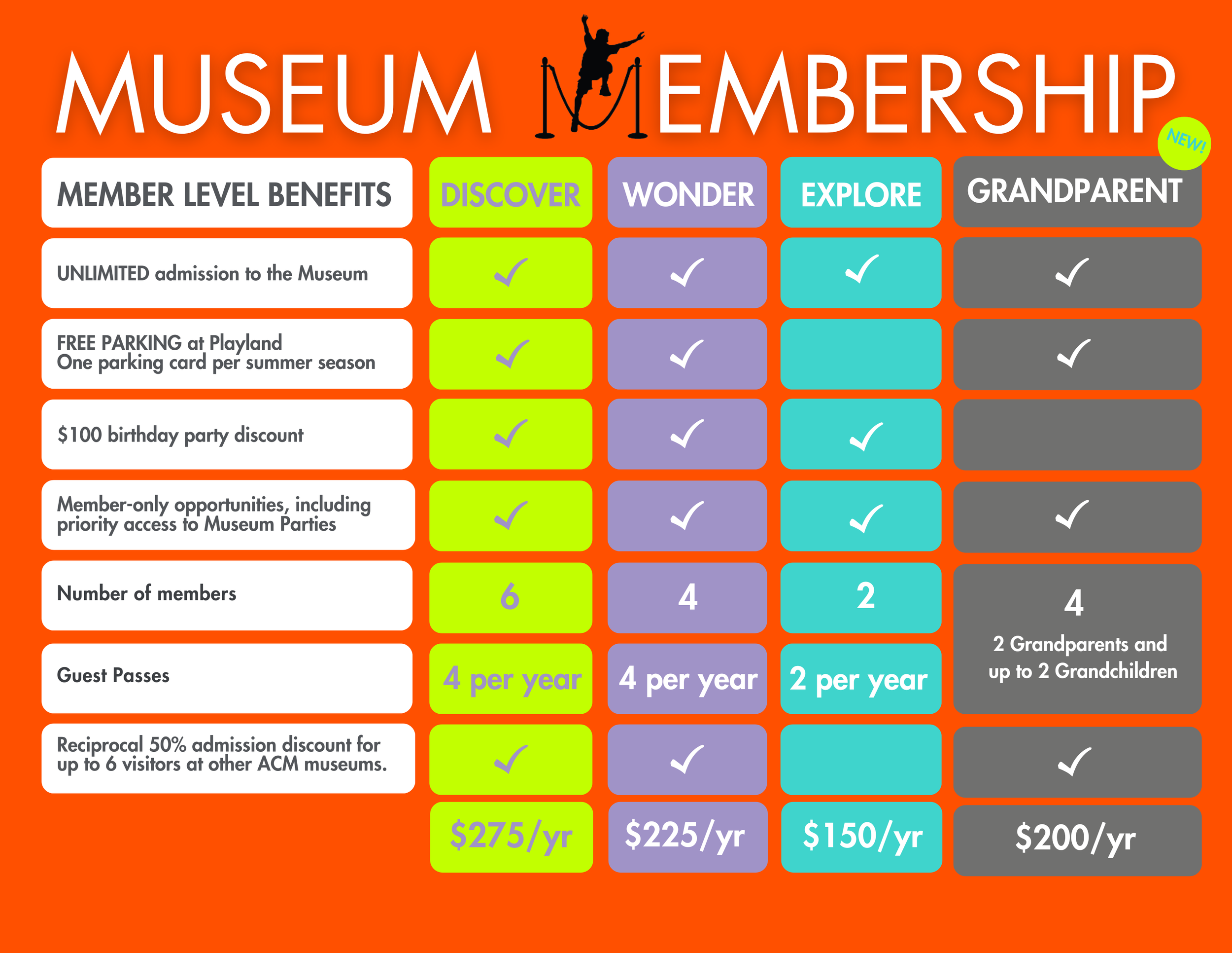 NEW: Now offering Family Access Membership (FAM) - a reduced-cost membership to qualifying families with all the benefits of our premium DISCOVER Level.
