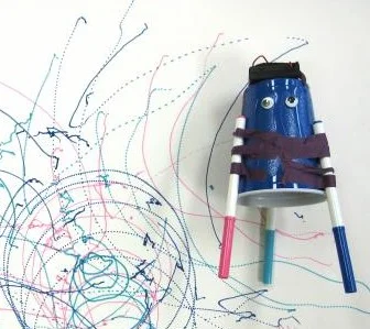 Children will build a battery-powered (ro)bot from a drinking cup, some felt tip markers, batteries, tape and a small electric motor (plus googly eyes if they want).