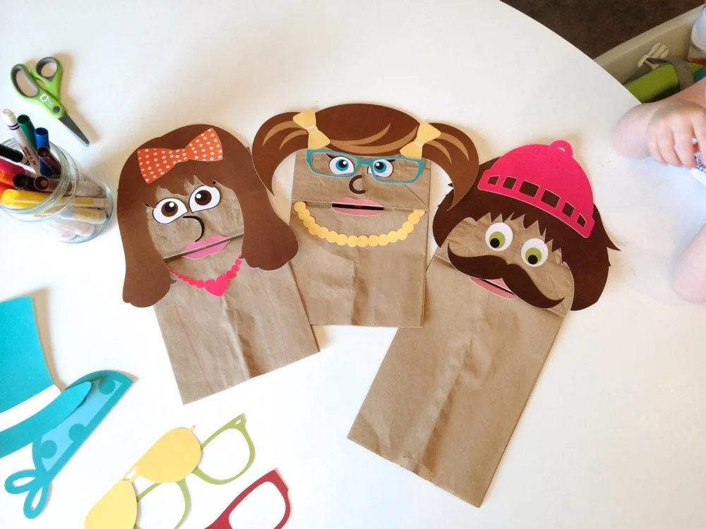 We are making paper bag puppets in the MakerSpace with our grandparents!